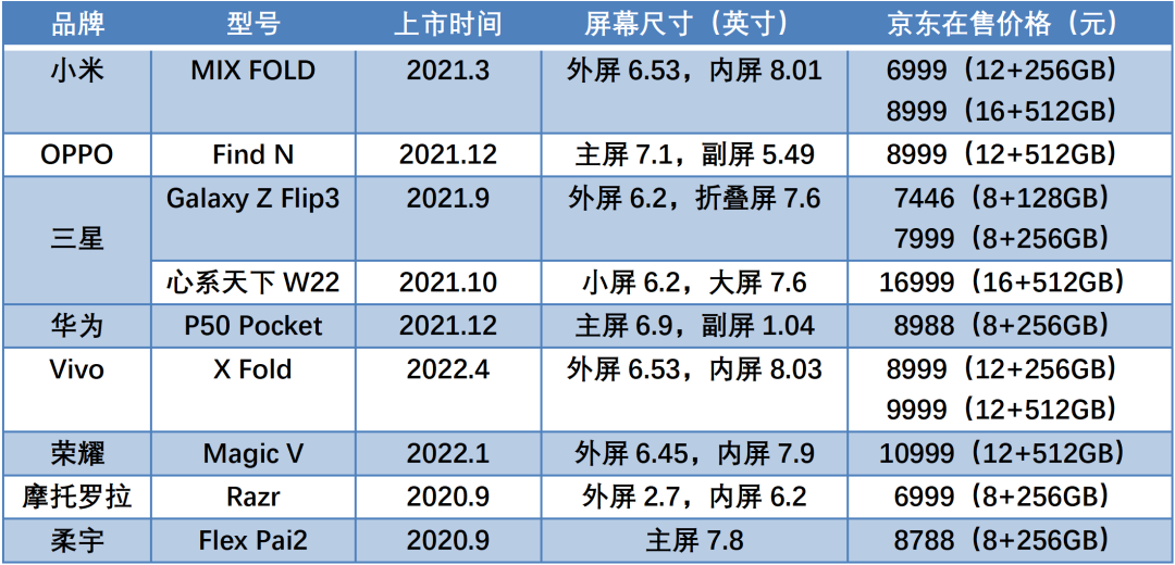 国内主要在售折叠屏机型