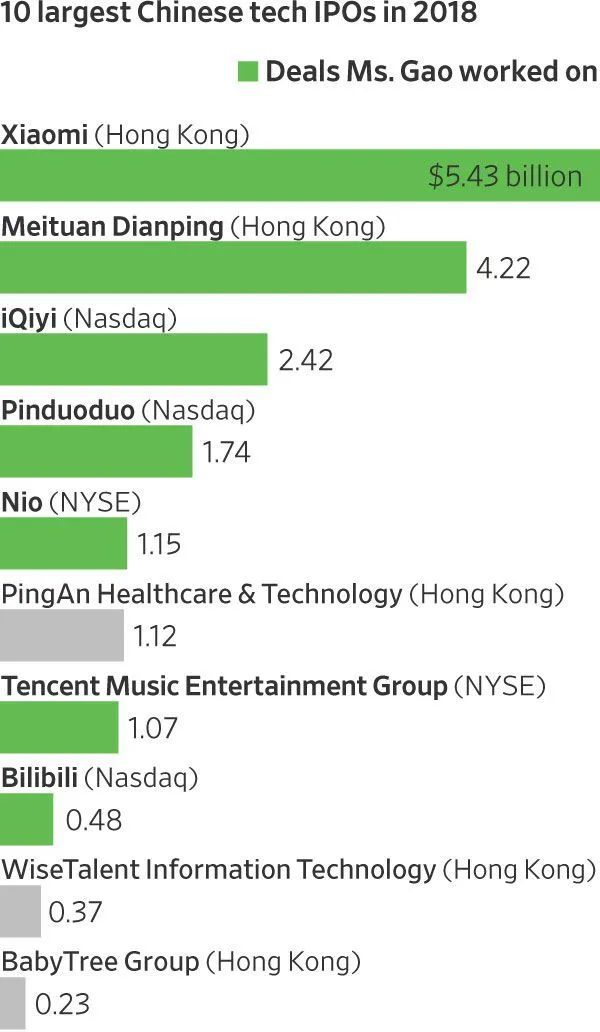 华尔街日报曾在2019年将高准描述为一个“待IPO公司愿意为了获得她的背书而更换律所”的人物。在那之前的2018年,中国的科技公司赴美上市如潮,高准正是在这股潮水中争得了名声。