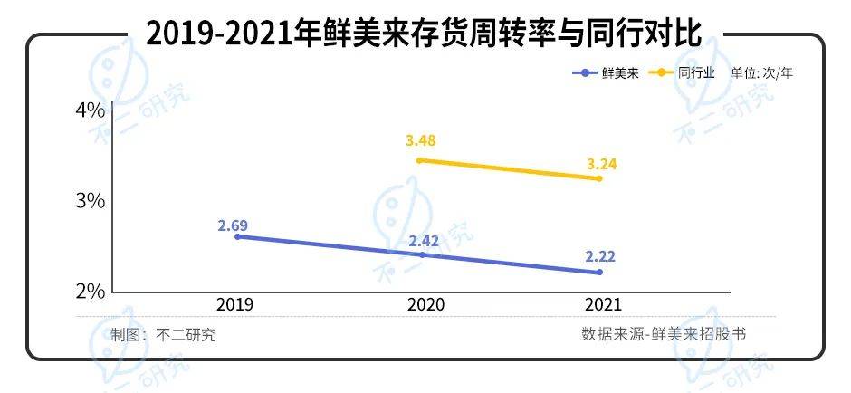 招股书显示,2019-2021年,鲜美来的存货周转率分别为 2.69次/年、2.42次/年和 2.22次/年,2019-2020年行业平均存货周转率分别为3.24次/年和3.48次/年。同行业其他公司的产品结构更加丰富,季节性特征弱于水产品,采购与销售关联更为紧密,因而存货周转较快。