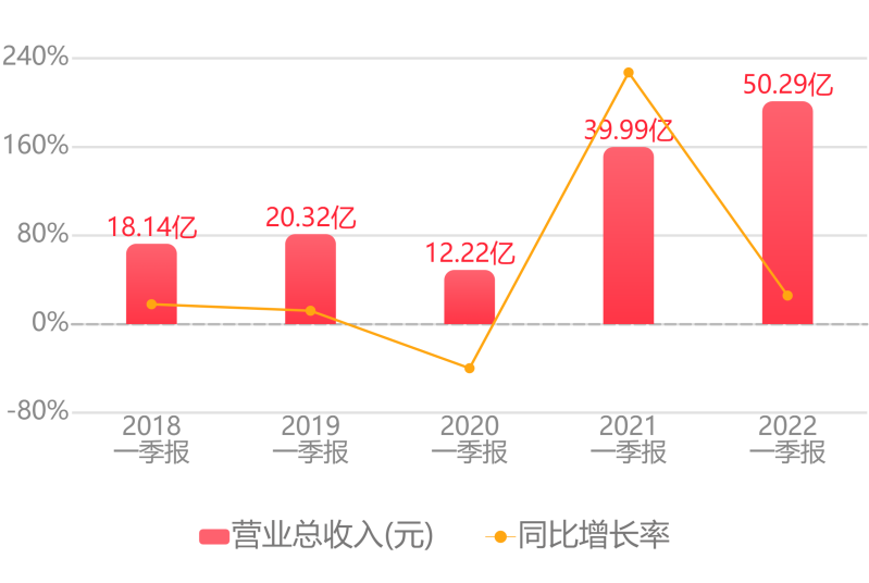 此外,杉杉股份2021年的营业收入为207亿元,同比增长151.9%;净利润为33.4亿元,同比增长2320%;2022年第一季度营业收入为50.29亿元,同比增长25.76%;净利润为8.07亿元,同比增长166.93%。