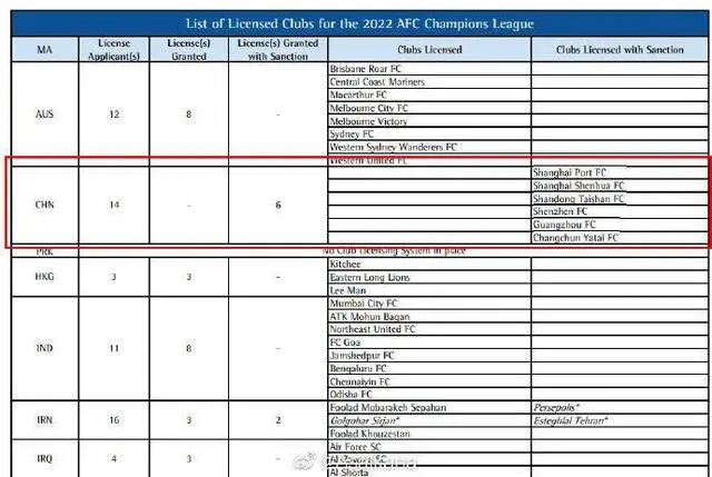 事实上,各支俱乐部对于这种情况也已经心知肚明。去年亚足联公布的2022亚冠联赛准入名单中,18支中超球队只有上海海港、上海申花、山东泰山、深圳、广州和长春亚泰共6支球队,申请了本赛季亚冠联赛的参赛执照——而在以往的赛季,中超所有俱乐部以及准入时间节点时拥有冲超资格的中甲俱乐部,都会获得亚冠准入资格。