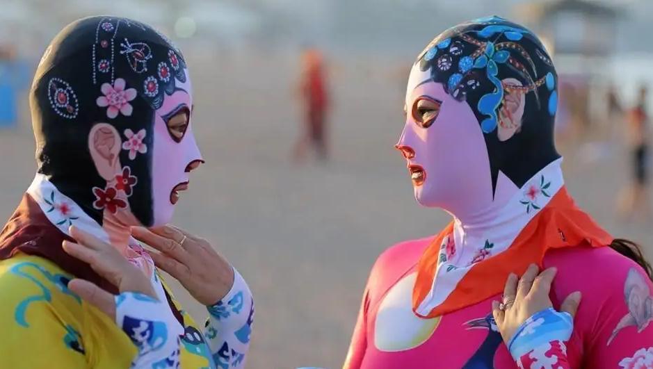 青岛大妈在海边游玩,让人们见证了脸基尼的诞生;优雅俏皮的贝壳帽成为全民爆款,而今都成为过去时。今年防晒界流行的时尚,是“中东风、悍匪风”式的防晒穿搭——防晒面罩。