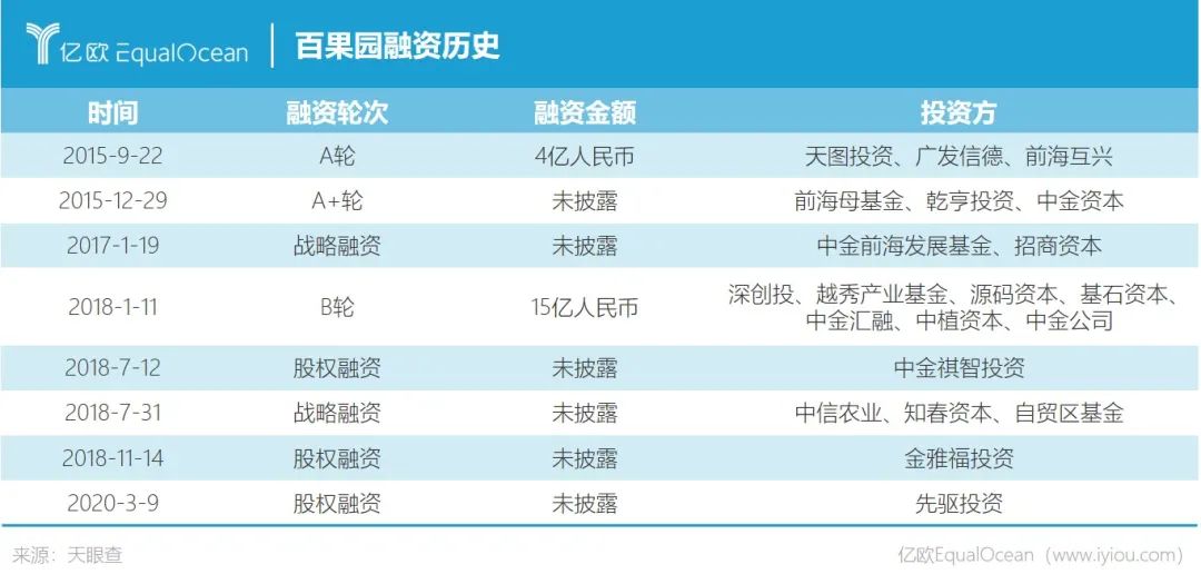 百果园的野心不止于此,2015年起开始引入外部投资。2015年9月,百果园完成4亿元A轮融资,由天图投资领投,广发信德、前海互兴等机构跟投,创下彼时水果零售行业最高融资纪录。2018年,百果园又完成了高达15亿元的B轮融资。