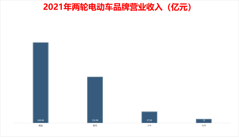 再譬如,2021年雅迪的营业收入为269.68亿元、爱玛的营业收入为153.99亿元,小牛的营业收入为37.05亿元,九号公司与之的差距肉眼可见。
