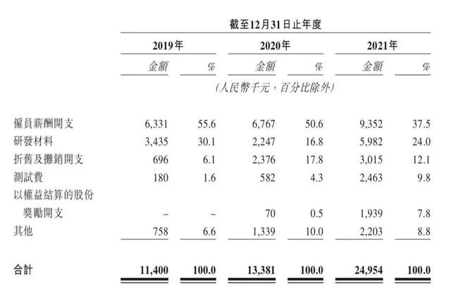 巨子生物研发成本构成 来源 / 招股书
