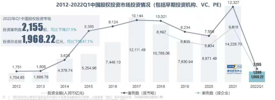 调侃归调侃,但投资人比创业者更早感知变化。不久前,清科研究中心公布了一组看着揪心的数据——今年一季度市场明显放缓节奏,投资案例数和金额分别同比下降27.5%和47.1%,换言之,今年投出的钱比去年同期少了近一半,堪称腰斩。