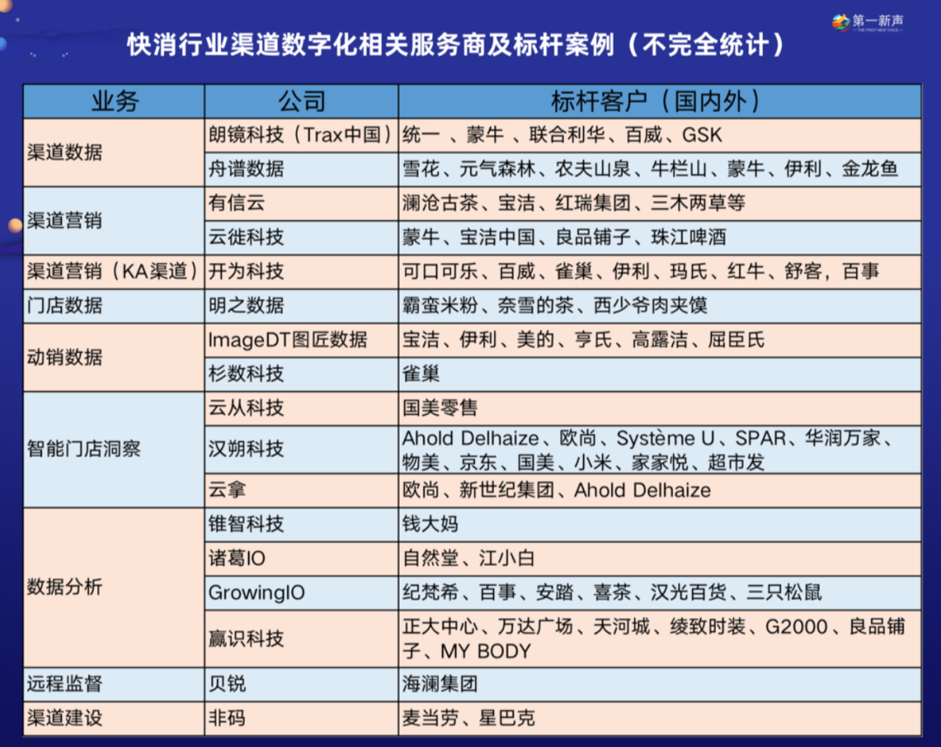 进行行业梳理时,第一新声发现尤其是线下渠道存在诸多痛点,例如渠道分散,信息流通存在盲区,59%的付费促销未按计划执行、30%黄金单品未能陈列、40%促销员不在岗或不合格......