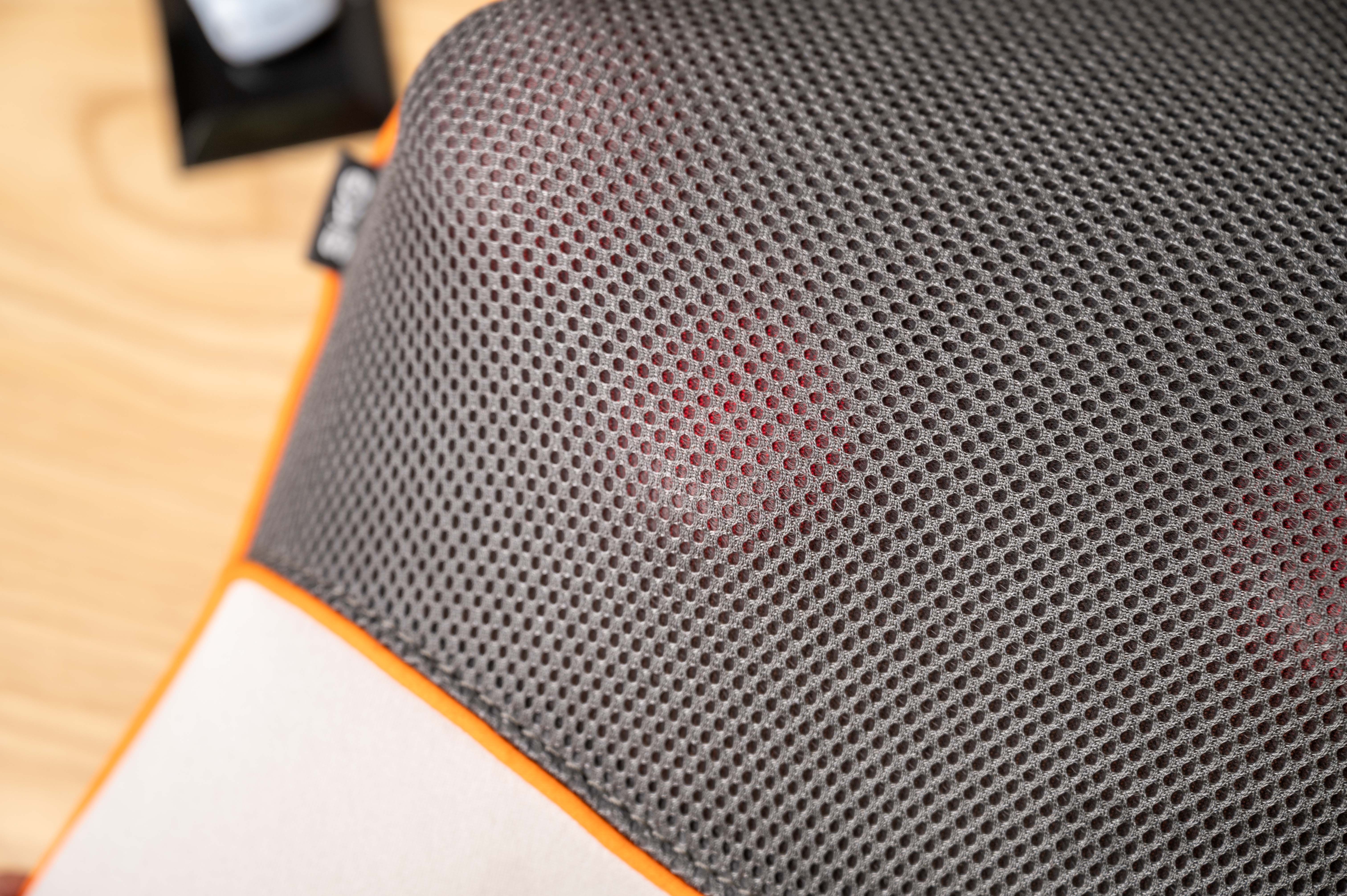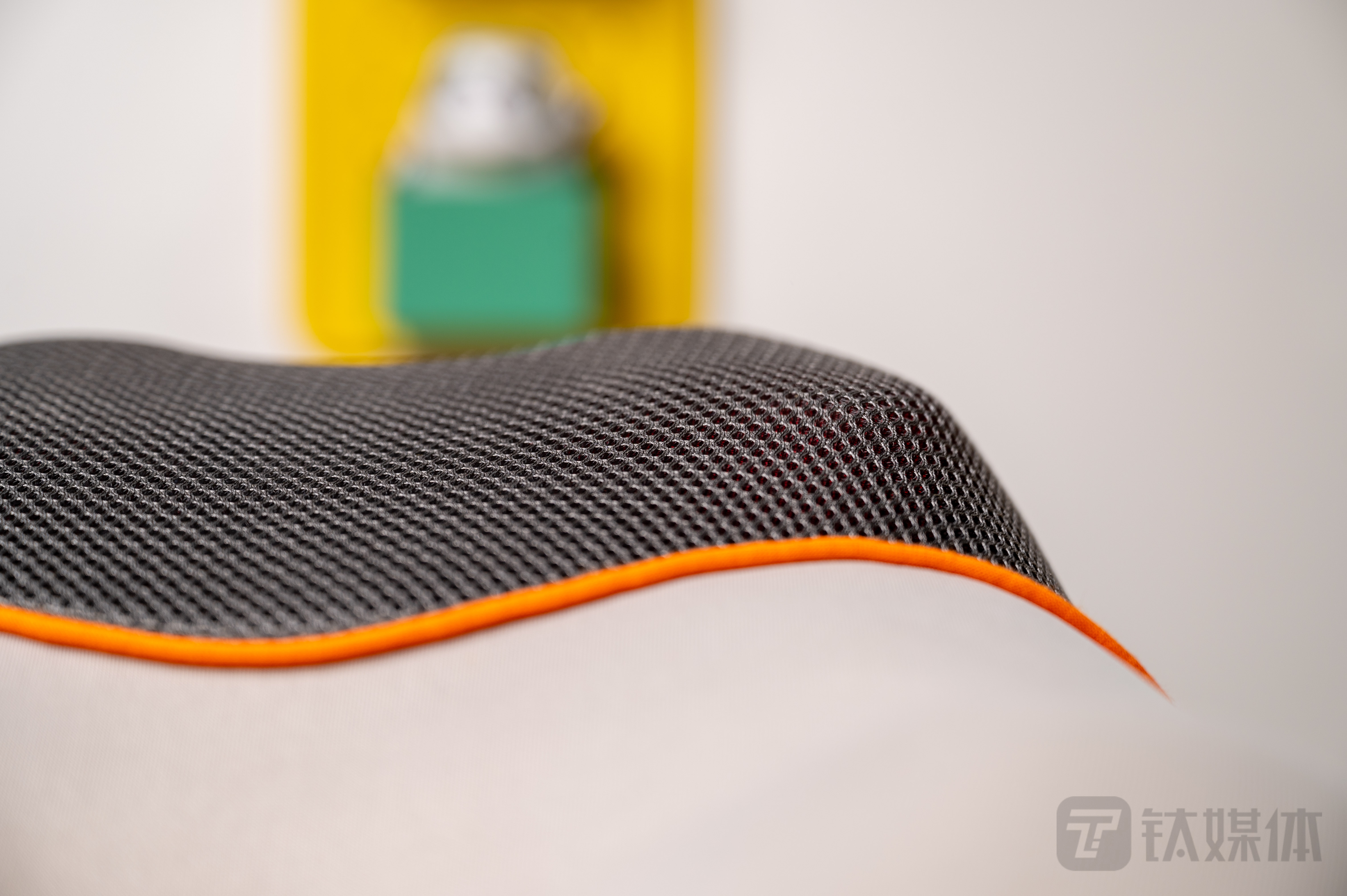 具体到设计上,SKG按摩腰靠T5整体采用了弹性好耐磨的布料,其背部的材质与底部支撑结构的包裹使用了潜水布,以此来保证耐脏性和耐磨性。在按摩区域采用了聚酯纤维网纹布,不用担心倚靠时会闷热,同时也能够便于热敷功能的热量传递。