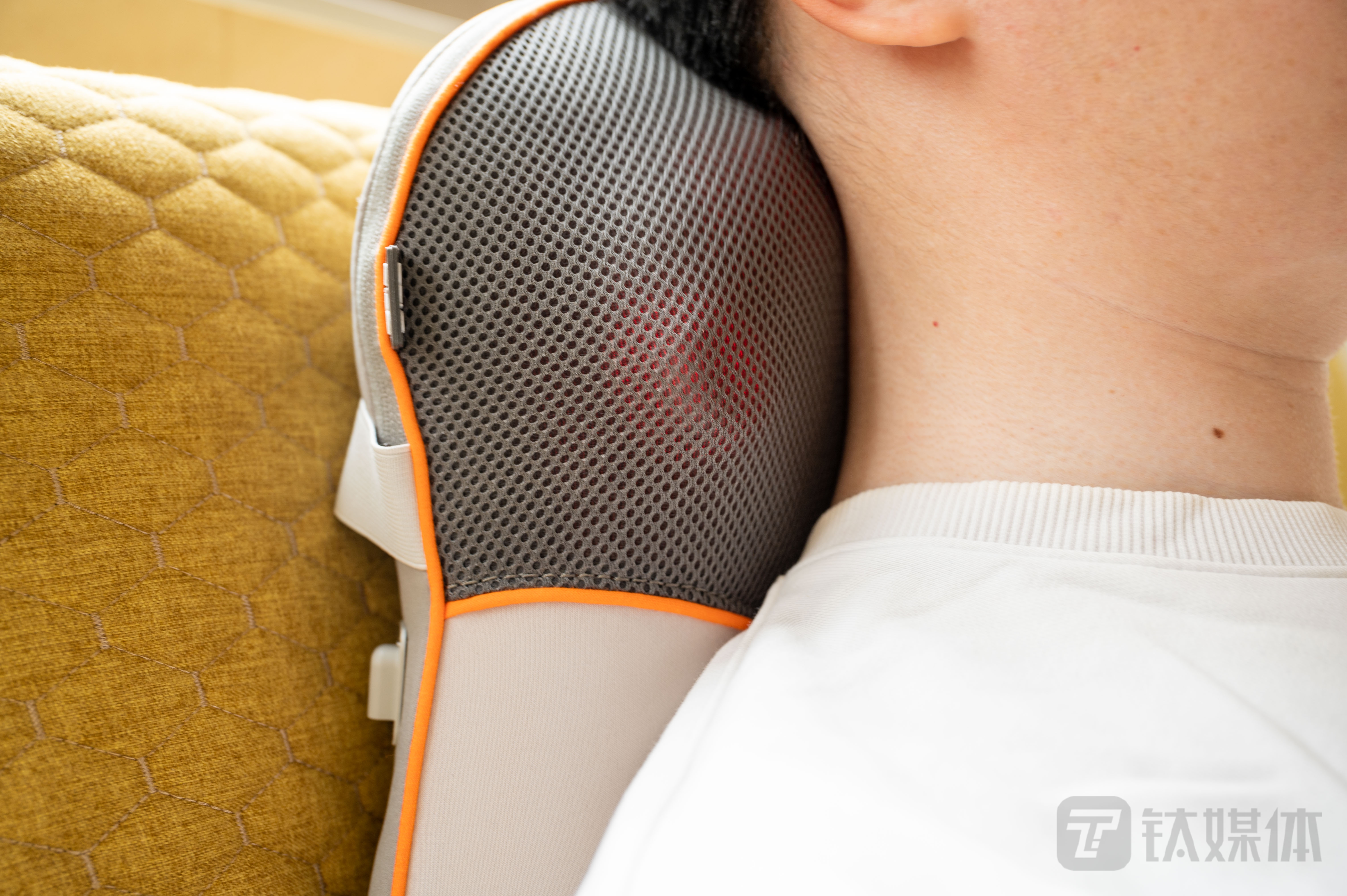 除了能够对腰部进行按摩以外,得益于充电使用的便携设计以及特殊的结构,SKG按摩腰靠T5还能对肩颈、大腿、小腿、腹部等地方进行按摩。比如久坐后,除了腰部需要放松以外,长时间盯着显示器也让肩颈的肌肉会觉得酸痛,此时将按摩腰靠放在后背上方,身体部分正好可以嵌入凹槽内,从而实现肩颈按摩。