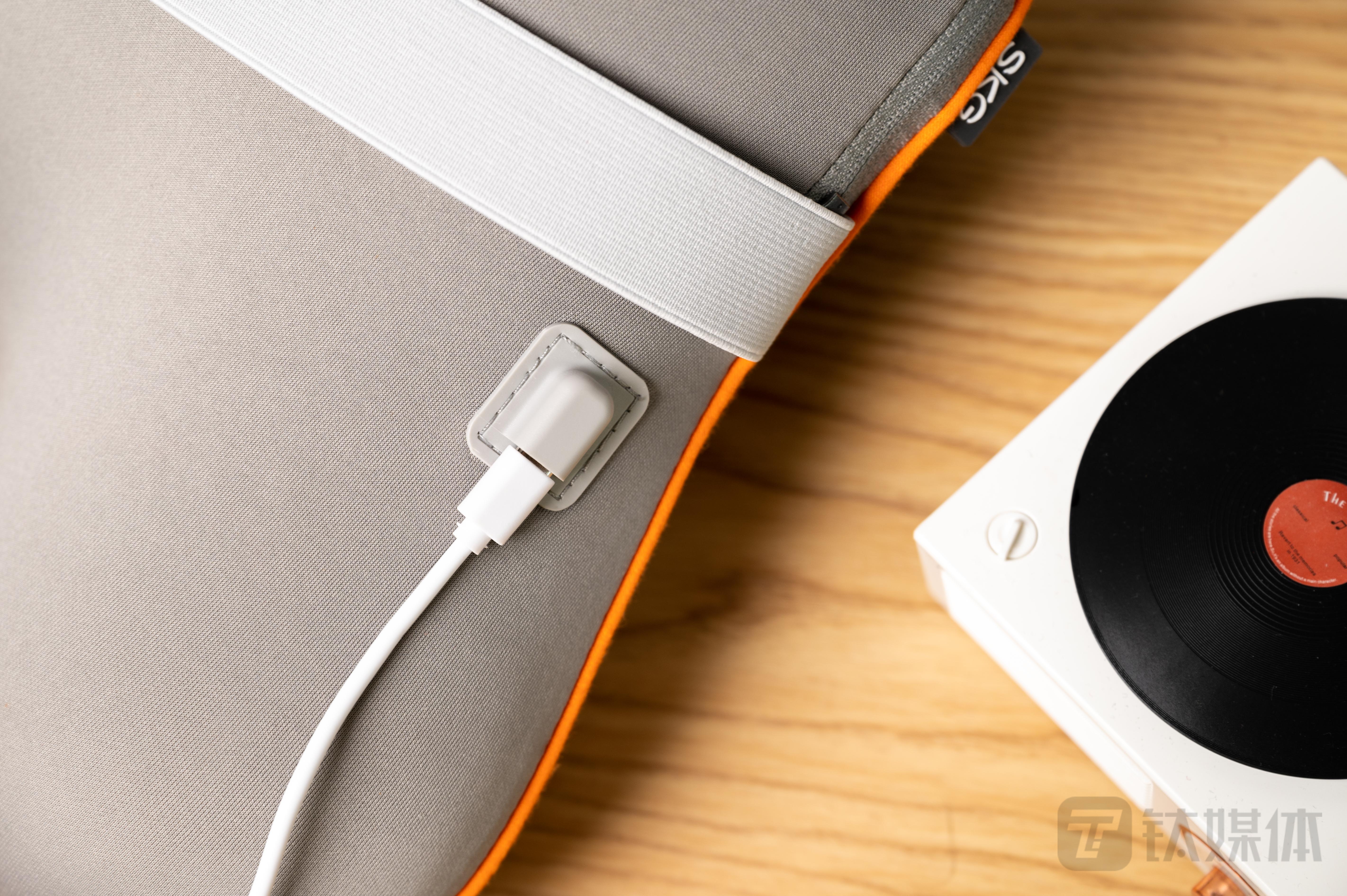 充电接口位于电源对称侧,采用了当下已经成为主流的USB Type-C接口,在包装内附赠了一条充电线,其实用自己的手机或者其他充电器甚至充电宝,都可以为其进行充电。内置电池容量为2200mAh,并不算特别大,实测单次充满可以用80~90分钟,这里也需要注意按摩的时间也不宜过长,运行一段时间后,产品也会提示你并自动关闭。