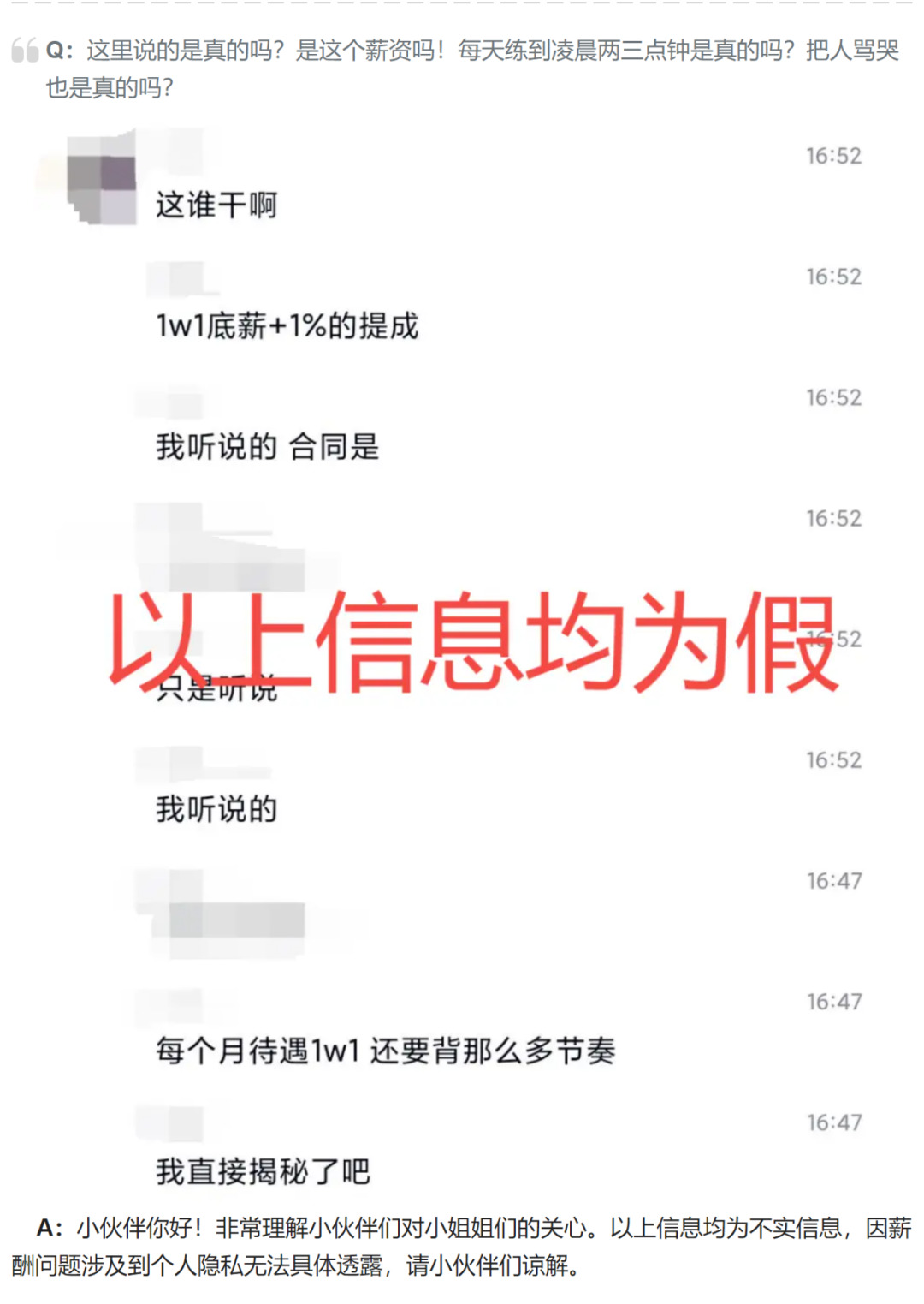 5月11日凌晨,A-SOUL制作委员会在B站紧急发布了一份Q&A,澄清了薪资以及霸凌等重点问题。根据A-SOUL制作委员会的说法,网传消息均为不实消息,不过他们也不方便透露A-SOUL成员的真实薪酬情况,毕竟这涉及到了个人隐私问题。