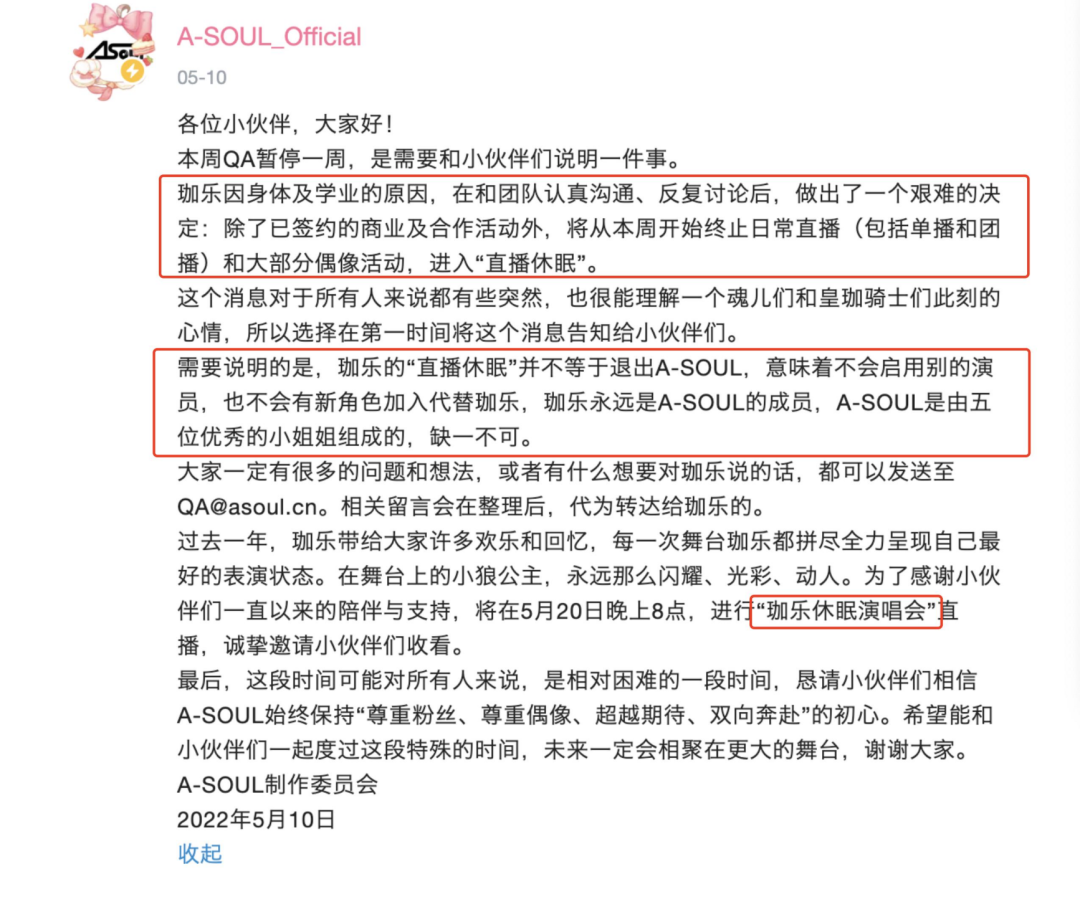 一个美好的梦结束了,这几乎是所有A-SOUL粉丝面对珈乐中之人“直播休眠”的第一反应。