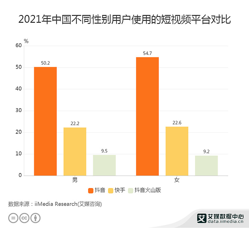 艾媒咨询数据显示,2021年,⼥性使⽤抖音的占比为为54.7%,使用快手的占比为22.6%,均超过男性用户占比。使用短视频平台的女性用户的增加、女性意识的崛起,使得更多围绕女性展开、以女性为主的内容创作的需求增加,而在许多情侣、夫妻、亲子类账号中,女性往往都是居于从属地位,但在闺蜜类账号里,“双女主”和“大女主”才是最常见的模式。