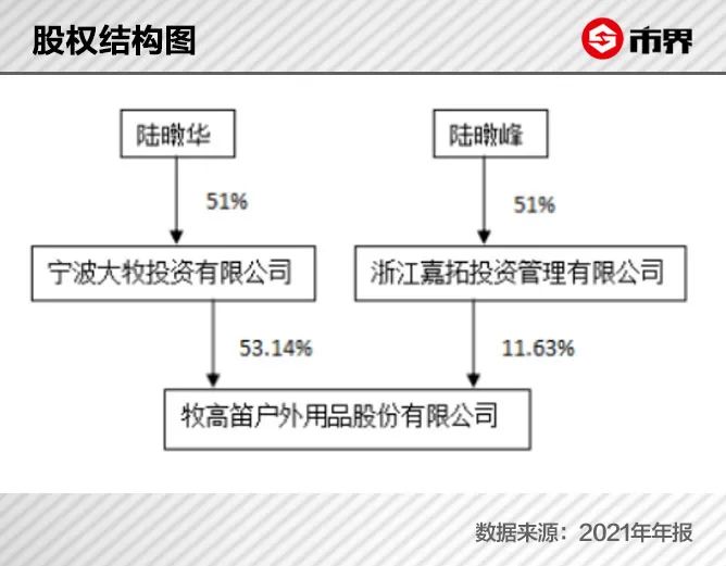 牧高笛的实际控制人为一对70后兄弟——陆暾华与陆暾峰。在做了多年帐篷生意之后,二人通过旗下公司于2006年出资设立了牧高笛。2017年3月,牧高笛在上交所上市。