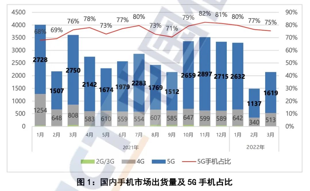 信通院的数据一个月比一个月吓人。2022年1月,同比下降了17.7%,2月同比下降了31.7%,3月同比下降了40.5%。事实上,自2019年以来,国内手机的大盘销量就一直在走下坡路。