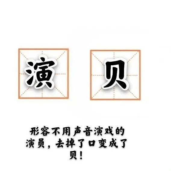为讽刺一些“演员”几乎不用原声,对配音高度依赖。网友们又造了一个新词“演贝”,定义是“不用自己声音演戏的演员”。