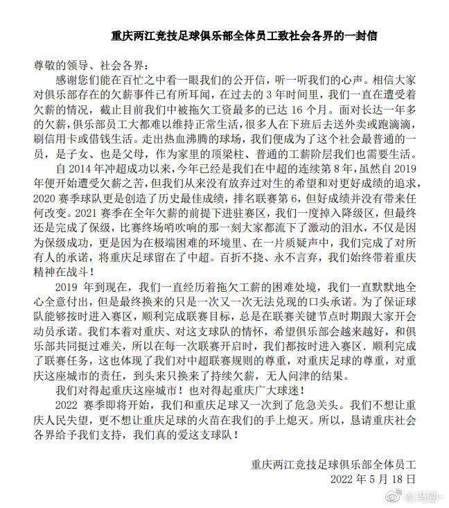 近日,重庆两江竞技俱乐部等国内足球俱乐部的「讨薪潮」,再次引发了大众的关注。根据《足球报》等媒体的消息,作为中超俱乐部的重庆两江竞技,目前连进赛区的钱都还没有解决——那么,想要解决球员们苦苦追诉的「欠薪」问题,对于俱乐部而言更是难上加难。