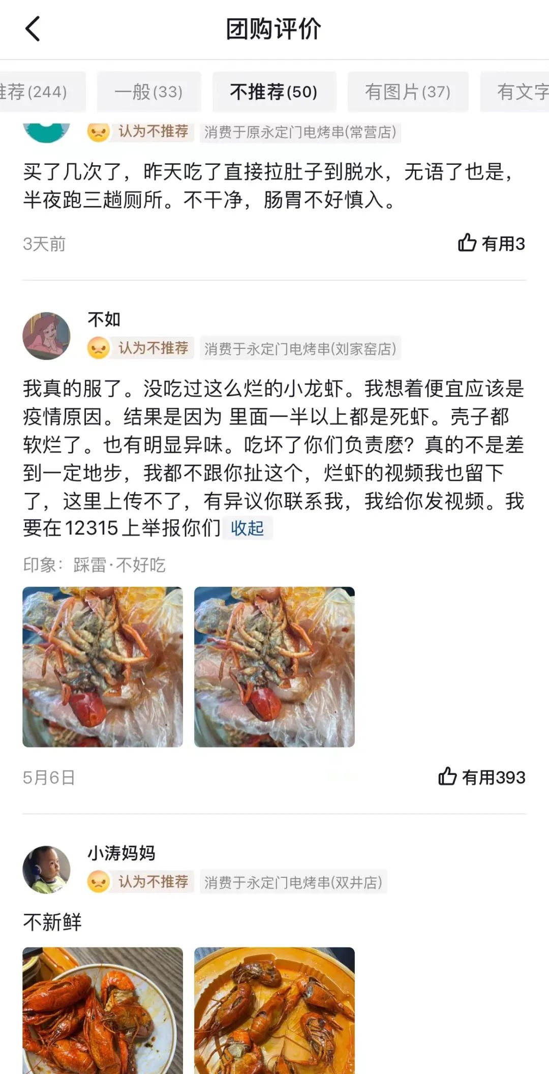 抖音小龙虾团购页面的用户评价