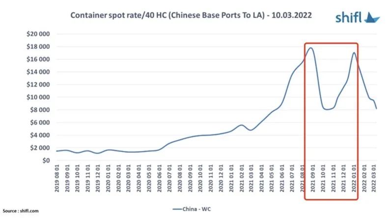 市场供需同时共振,导致运价在两年内从2千美元涨到了2万美元。