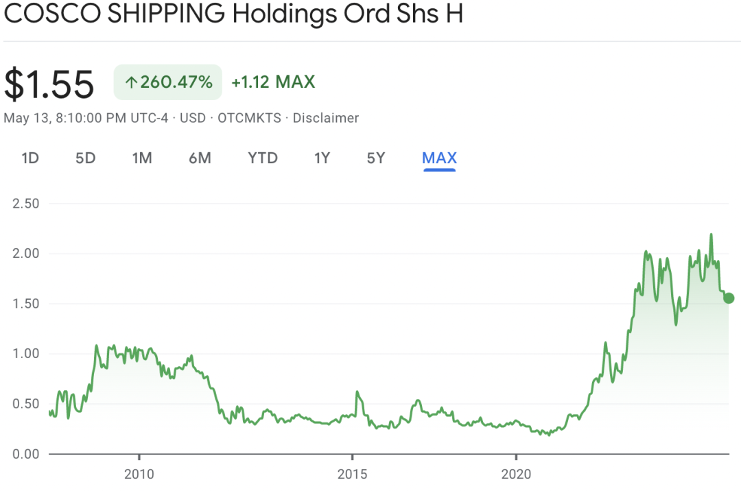 中国最大的航运公司,中远海运的股价曾横盘了10年