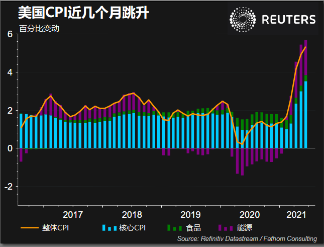 2021年,美国居民消费和CPI都在跳升