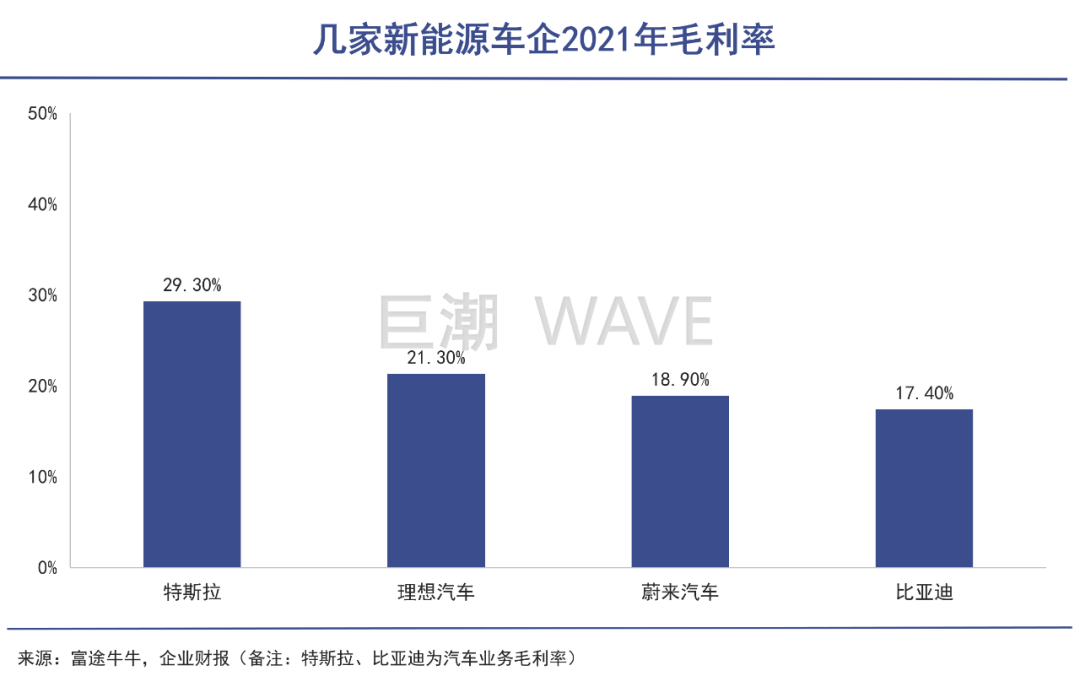 垂直一体化模式,听起来本应降本增效,提升盈利能力。但实际情况是,电池外采的蔚来、理想毛利率能维持在20%上下,特斯拉甚至达到30%。比亚迪汽车+电池业务毛利率才17.4%,而且还在持续下滑。![]()