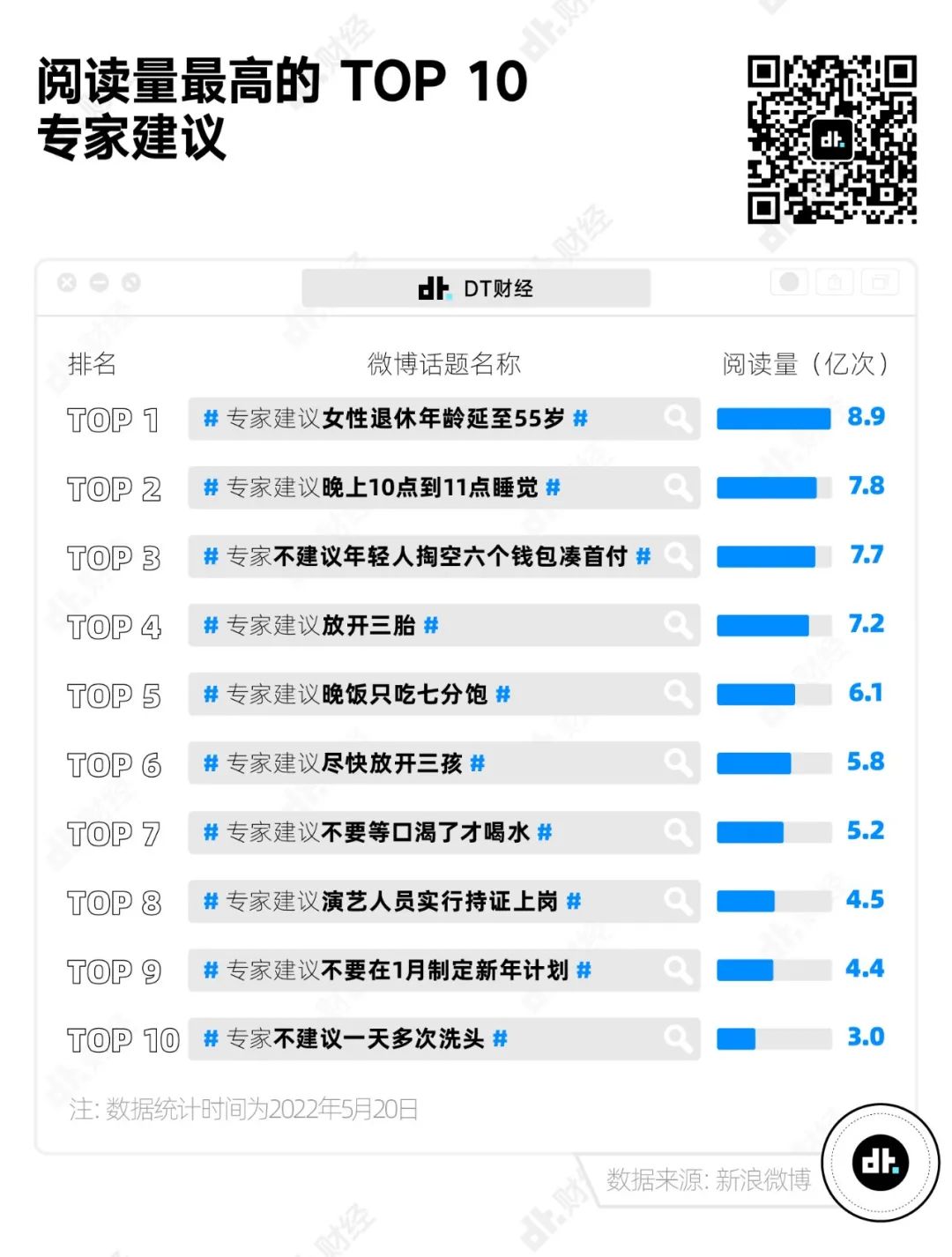 从阅读量最高的话题来看,专家们的关注点深入生活各个角落,上至买房生育退休难题,下至吃饭喝水睡觉日常,甚至于洗头、制定新年计划等琐事也覆盖到位,简直比父母还要为我们操心。