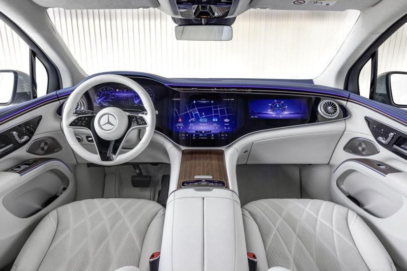 内饰方面,作为奔驰EQ系列电动车型,EQS SUV在内饰风格上与此前的EQS基本保持一致。宽度达1.41米的MBUX超联屏几乎贯穿两侧A柱,与定制的康宁大猩猩玻璃完美贴合。三块最高达209 PPI分辨率的高清屏幕带来了十分细腻的视觉效果,屏幕下方的12个传感器带来的触觉反馈,也让操作更为清晰准确。