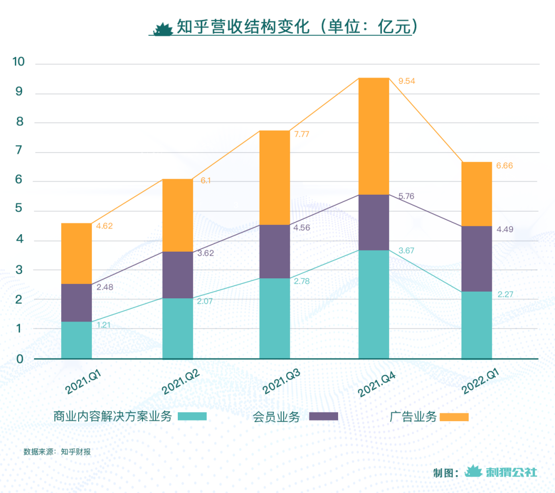 知乎是怎么赚到这些钱的?从财报数据上看,知乎的四大营收业务收入均有不同程度的增长。从收入规模看,内容商业化解决方案业务营收同比增长87.7%至2.27亿元,广告业务同比增长1.7%至2.17亿元。付费会员业务营收也表现不错,同比增长75.1%达至2.22亿元。