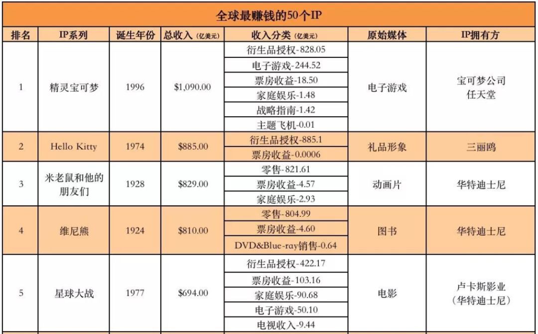 而在这份榜单上,除了宝可梦外,其他的还有马里奥、哈利波特、迪士尼公主等耳熟能详的知名IP。