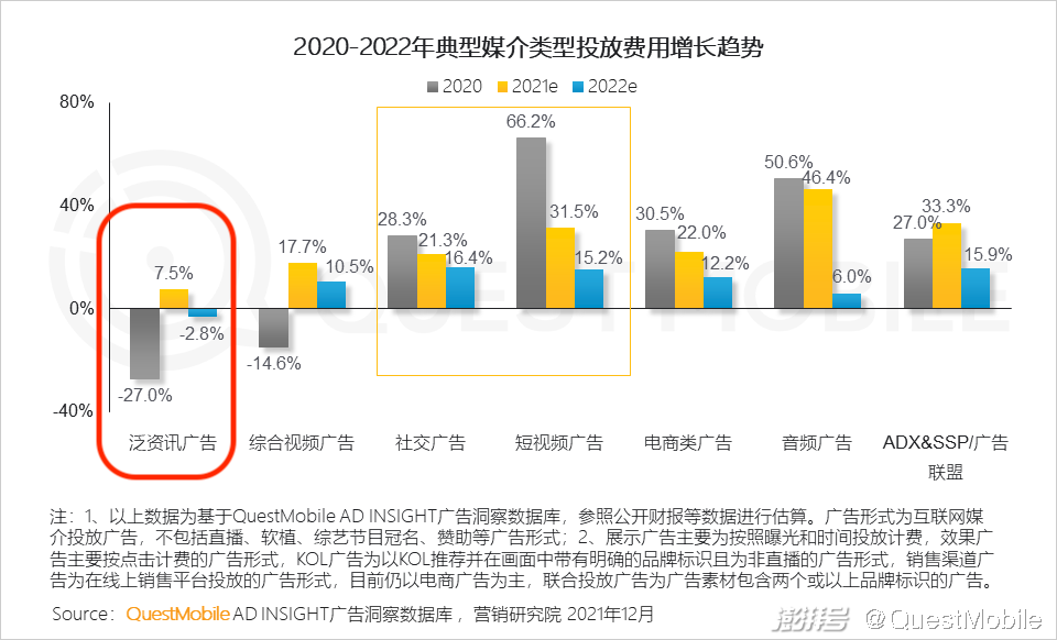 说明:上面三幅图节选自机构对广告平台的监测。腾讯新闻所在的泛资讯广告领域处于萎缩趋势,无论是DAU、使用时长,还是广告收入增速都受到短视频和社交广告的严重冲击。整个腾讯站内+联盟的广告流量规模增长几近见顶。
