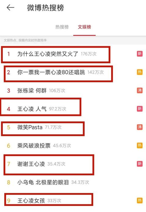 无论是网易云音乐、QQ音乐还是酷狗音乐,王心凌的名字都空降音乐热搜榜第一名,在微博的文娱榜上,与王心凌有关的话题也一度霸榜。