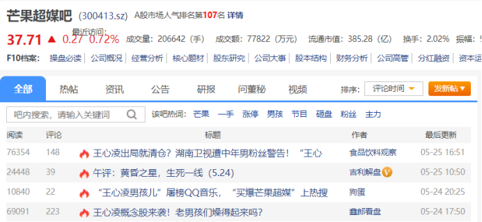 在芒果超媒股吧,已经重仓的王心凌男孩甚至放言:“王心凌出局就清仓!”