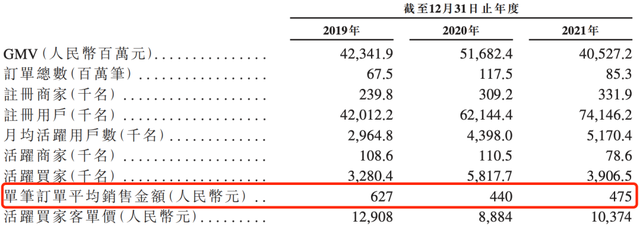 其中玉翠珠宝的GMV占比度在2019年到2021年分别占47%、42%和39.1%,品类特性拉高了客单价,同期活跃买家客单价分别为12908元、8884元和10374元。