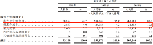 具体来看,微拍堂的销售及经销开支包括广告及宣传费用、优惠券成本等费用支出,其中广告及宣传费用占销售开支比重分别为93.7%、95%和85.8%。