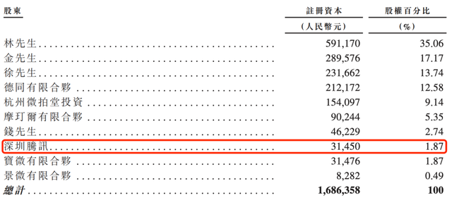 从目前的股权比例来看,经过部分退出后,腾讯持股1.87%。创始人兼CEO林志明持股35.06%,另外两位持股比例最大的个人股东也是创始团队成员,团队持股超过60%。