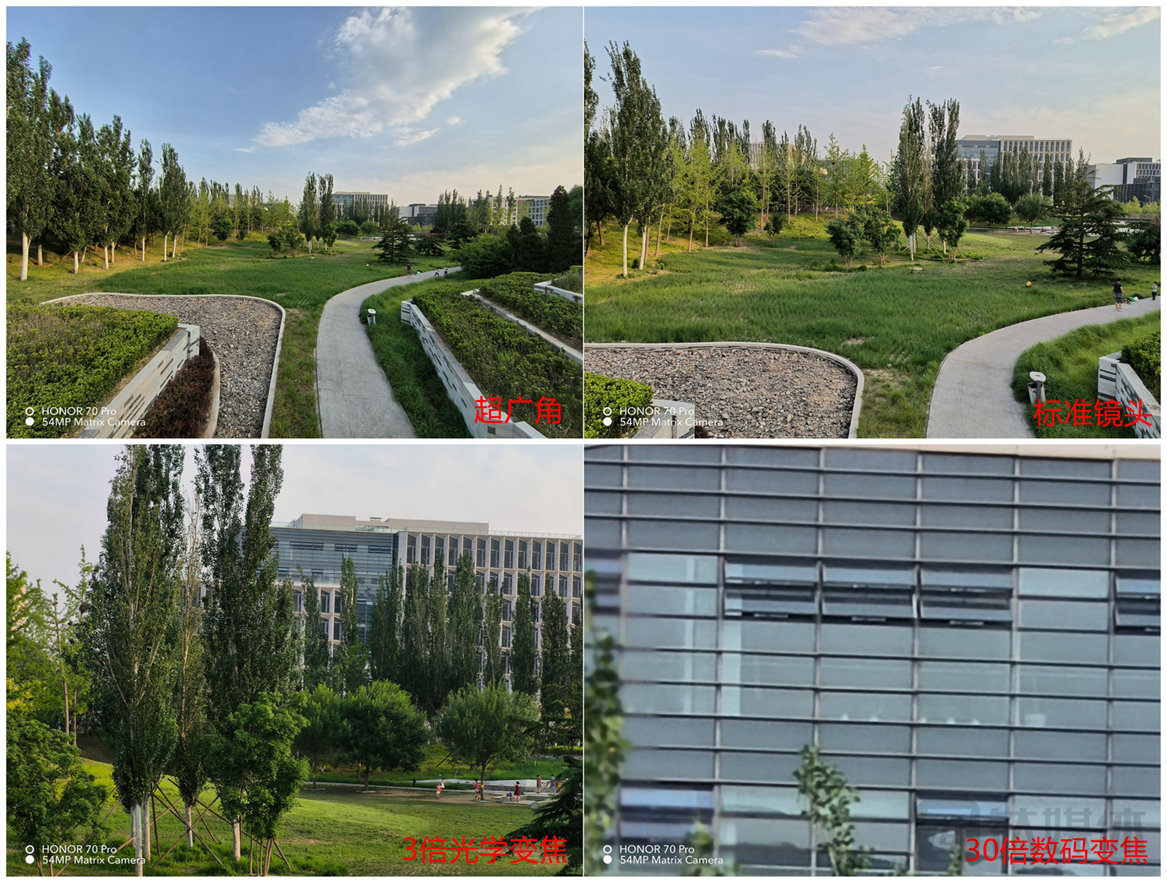 在基础的拍照环节,这里分别测试了从超广角一直到30倍数码变焦的画质,如果你对解析力等方面比较关注,可以点开大图。从实际成像效果来看,HONOR Image Engine 荣耀计算影像平台对色彩有很好的把控,各个焦段之间没有色差,同时对于现场环境的光线与颜色还原做的也不错。