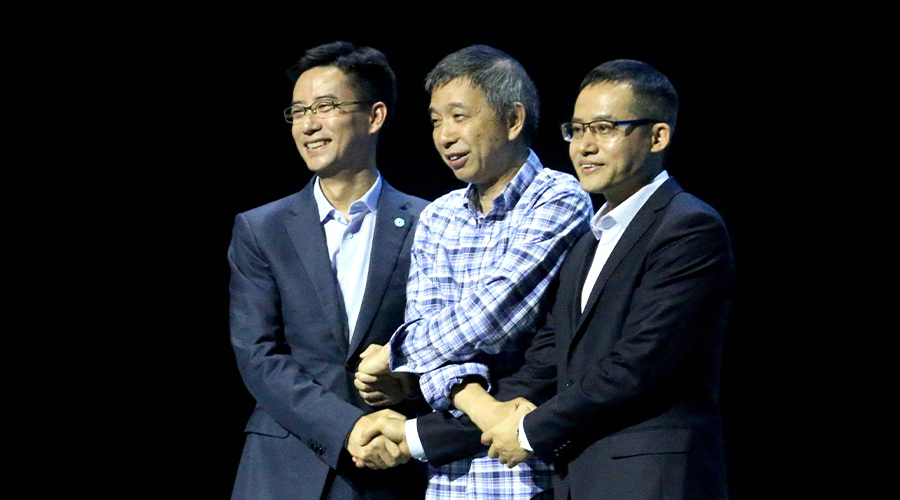 阿里云原总裁胡晓明、阿里云创办人王坚和阿里云智能总裁张建锋(从左到右)