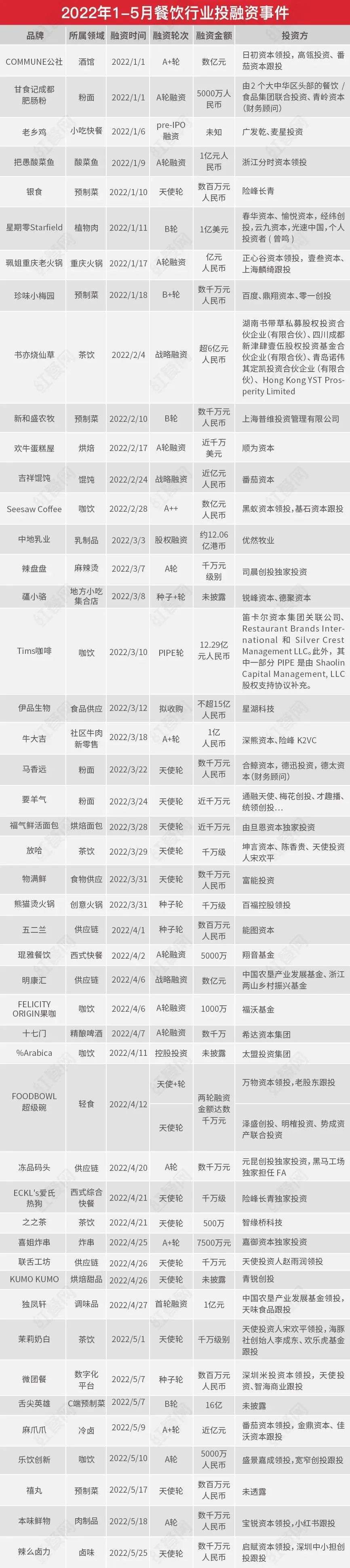 以5月的投融资情况为例,刚刚过去的5月,餐饮业仅发生了7笔融资,而去年同期,据不完全统计也有25笔。