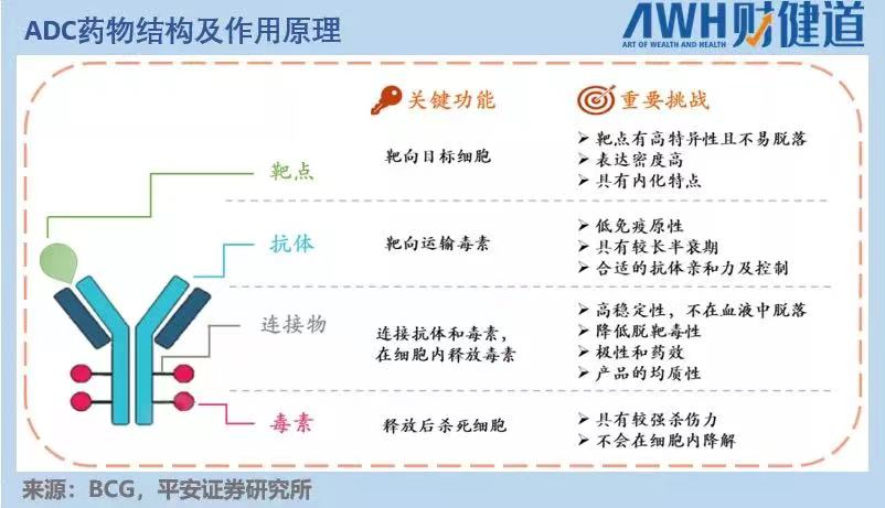 其实ADC的差异性开发存在诸多可能性。不同于单抗药物,ADC药物研发涉及抗体、毒性分子、链接子三部分,三项组合不同,链接方式差异都可能导致疗效和安全性产生巨大影响,另外适应症范围的差异,新技术的应用等都为后来者提供了创新的机会。