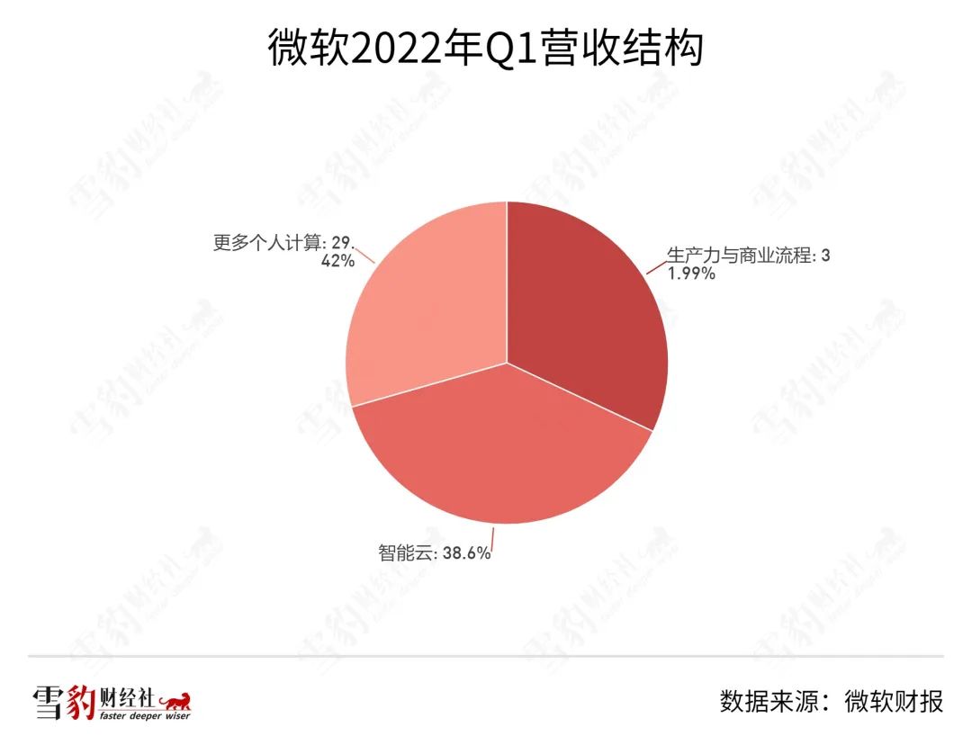 而微软尽管已是市值超2万亿美元的庞然大物,却依然保持着漂亮的增长曲线。据微软2022年第三财季(2022年Q1)财报,微软生产力与商业流程、智能云以及个人计算三大业务的表现均超预期。