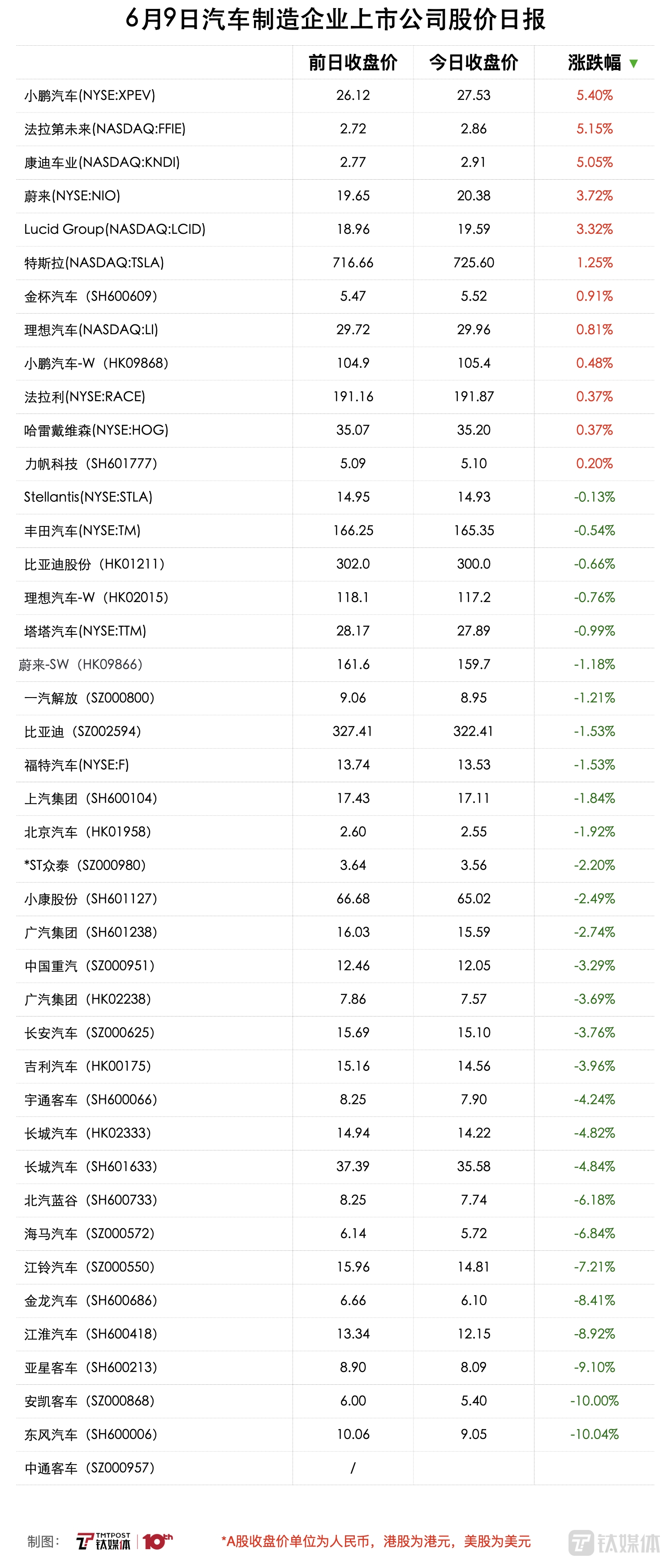 车企上市公司