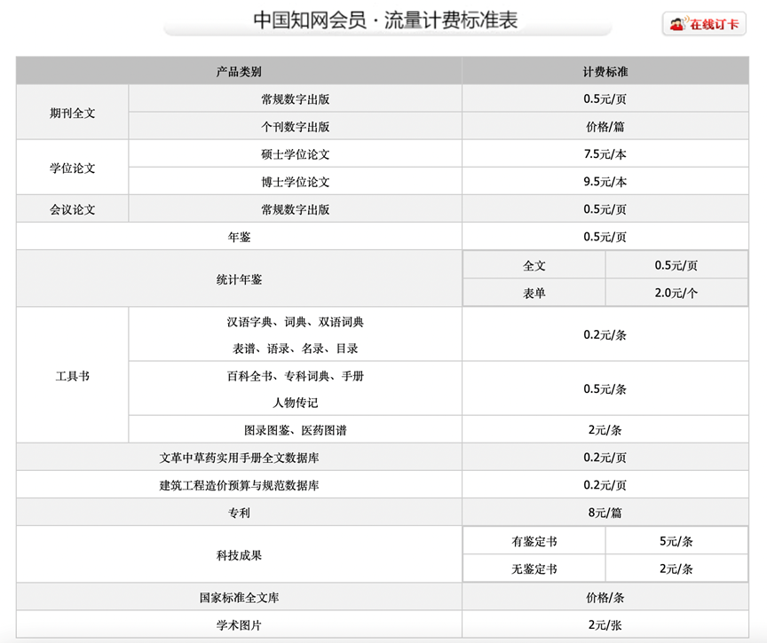 下载收费方面,知网官网上的“中国知网会员·流量计费标准表”显示,常规数字出版期刊全文和会议论文按照每页0.5元价格收取下载费,硕士学位论文每本下载价格为7.5元,博士论文则是每本9.5元。此前,硕士论文为15元每本,博士论文高达每本25元。