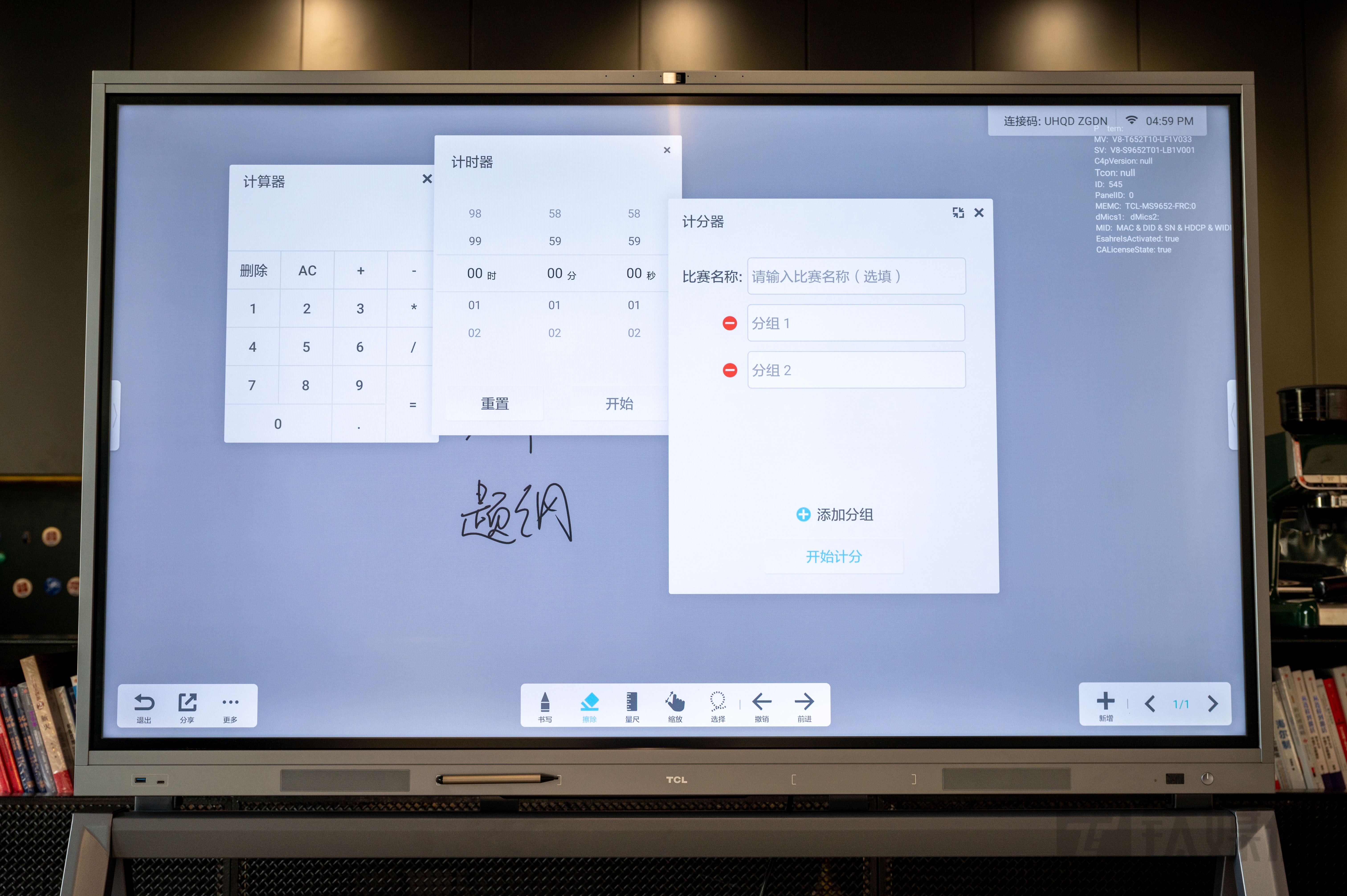 在系统应用层面,IFP65V50的表现与目前多数办公大屏基本一致,比较特别的一点是,TCL作为主机厂而非软件服务商的身份,使得它并没有内置的在线会议软件。同时这也意味着将选择权交给了用户,你可以在同一台机器内将腾讯会议、ZOOM、钉钉等主流的软件全部安装其中,只需要根据客户或者联络人的需求选用即可。