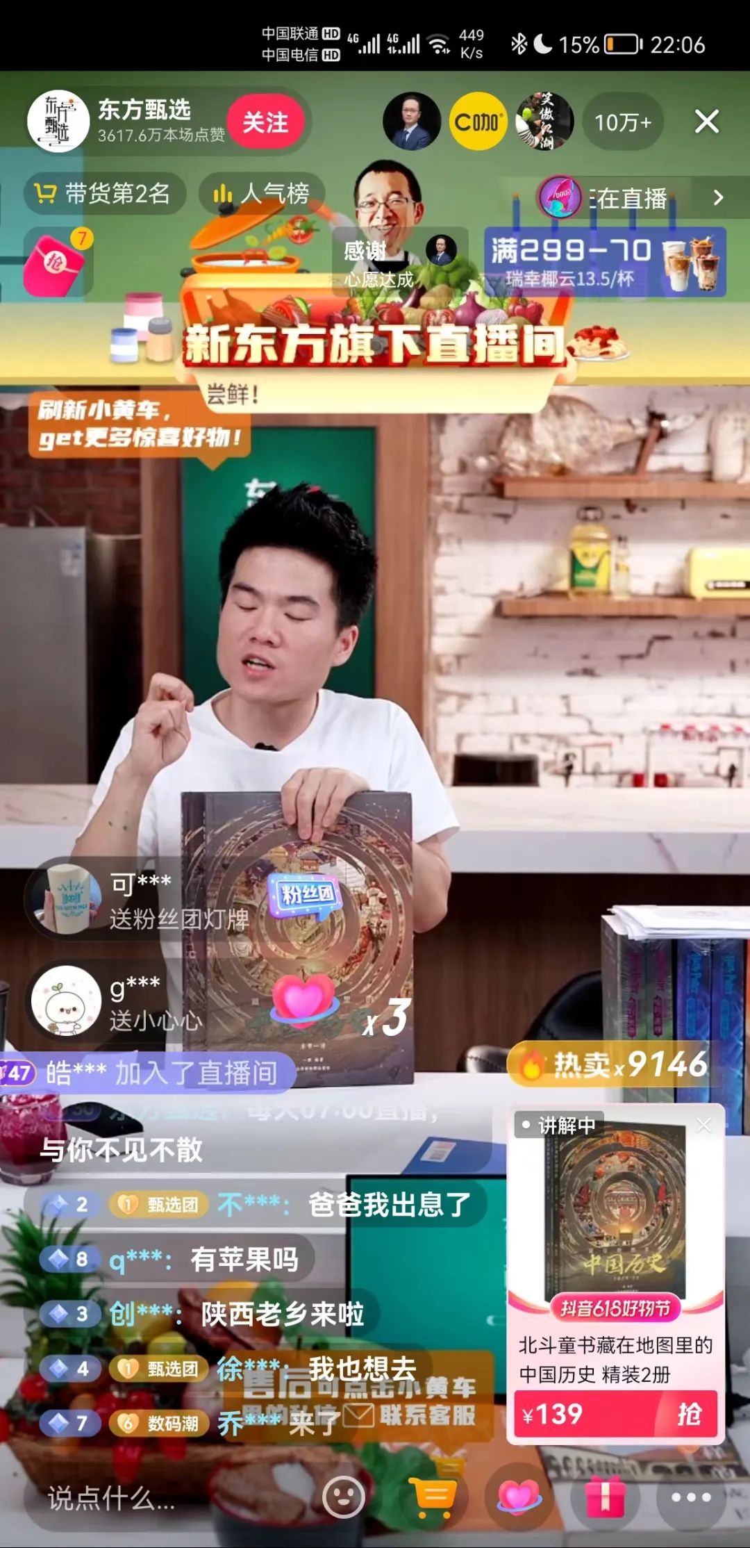 转折点在6月9日。曾经的新东方英语老师董宇辉,在东方甄选直播间内,用一口流利的英文展示牛排,用“美好的就如山泉,就如明月,就如穿过峡谷的风,就如仲夏夜的梦”形容商品……凭借充满才情的语言和新颖的双语直播模式,当晚登至抖音热搜第一名、同时段带货第一名,超4万观众同时在线。