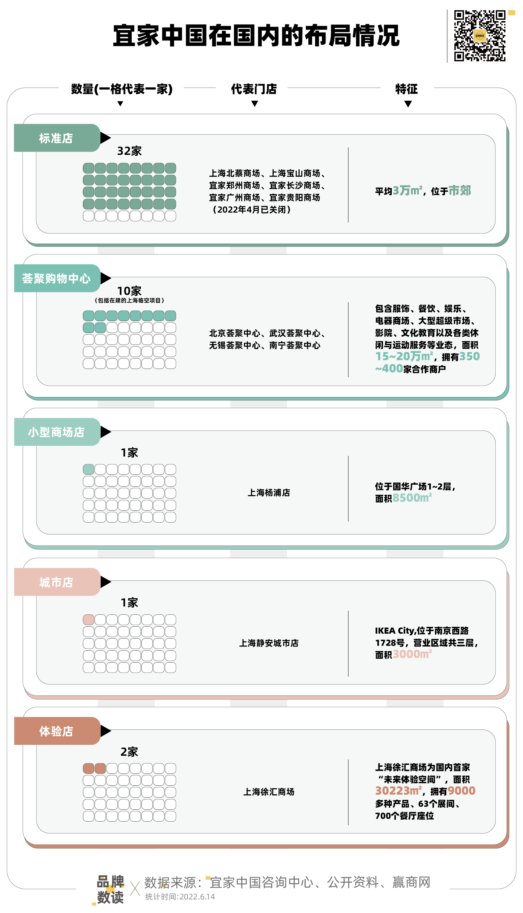 杨浦店闭后,宜家全国还有32家标准门店(宜家商场),1家城市店和2家体验店。更重要的是,给宜家购物中心渠道、乃至宜家全国的渠道拓展转型蒙上了一层阴影。