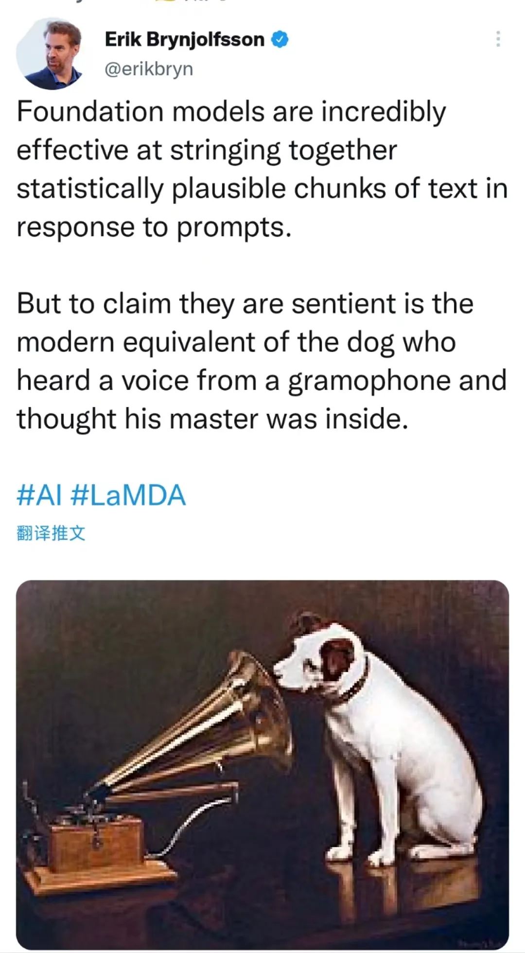 斯坦福大学AI研究所数字经济实验室主任埃里克·布林约尔松(erik brynjolfsson)则直接指出了LaMDA事件中的根本问题,他认为对话本身并不代表LaMDA是具有感知能力的。