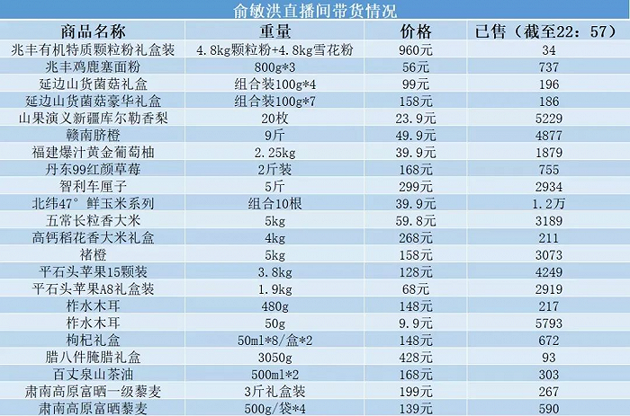 俞敏洪直播首秀当天的带货情况