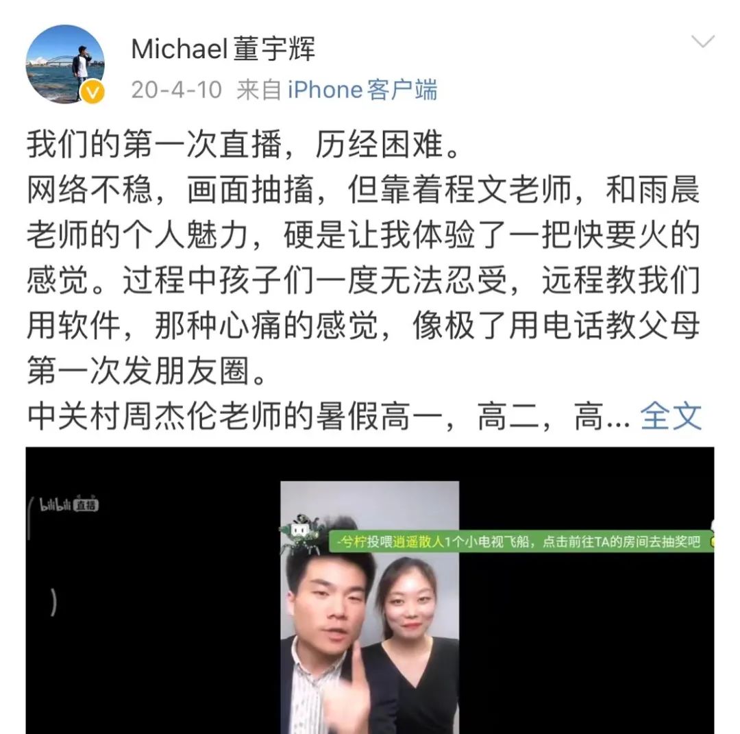 2020年3月28日,是董宇辉第一次在自己的微博发布内容——他介绍了自己所在的团队。他曾经的学生发现,这个团队居然只有他一位男老师,其他都是女教师。