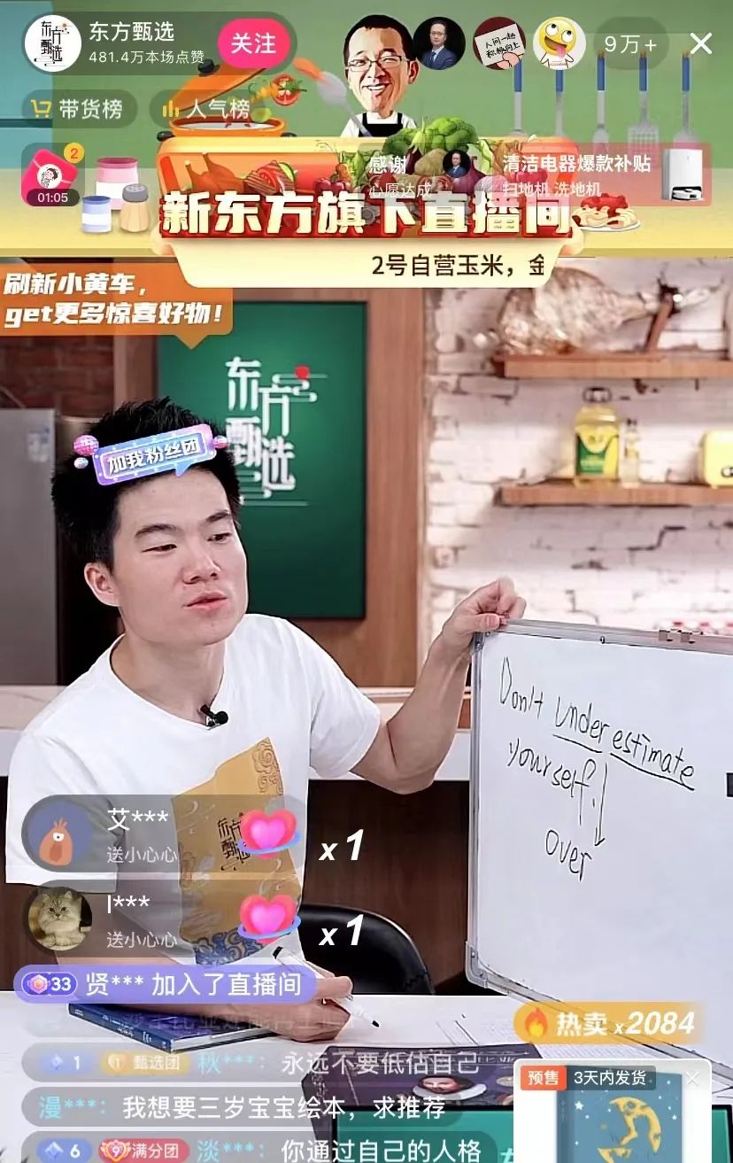很明显,在直播带货的风格和人设上,东方甄选找到了自己独特的优势,并通过这一实力成为破圈的现象级事件。